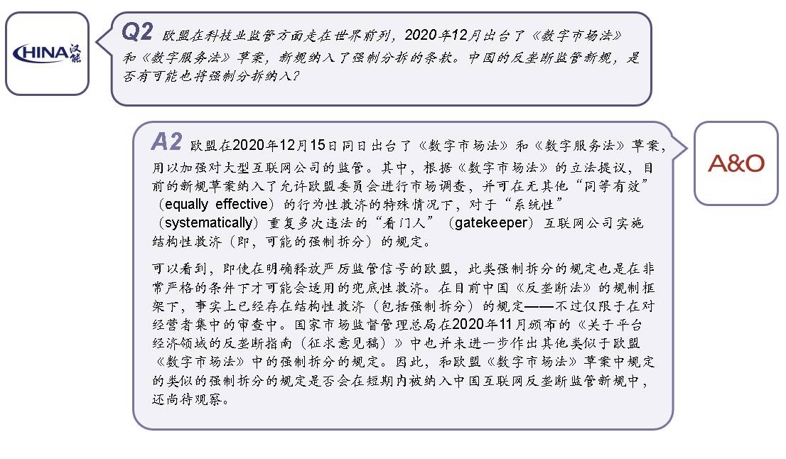Q8 反垄断政策会加速平台性公司/业务分拆吗?