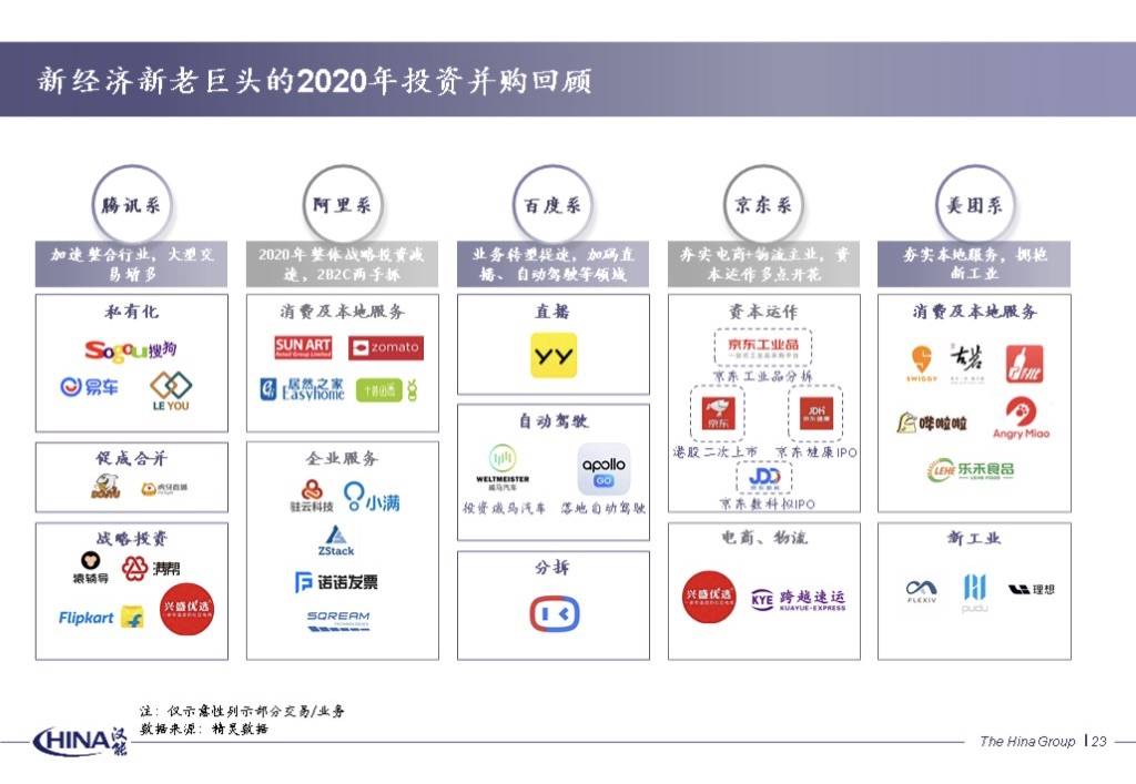 2020年,新经济新老巨头在投资并购领域持续的活跃,资本运作能力的高低已经成为巨头间竞争的核心能力。