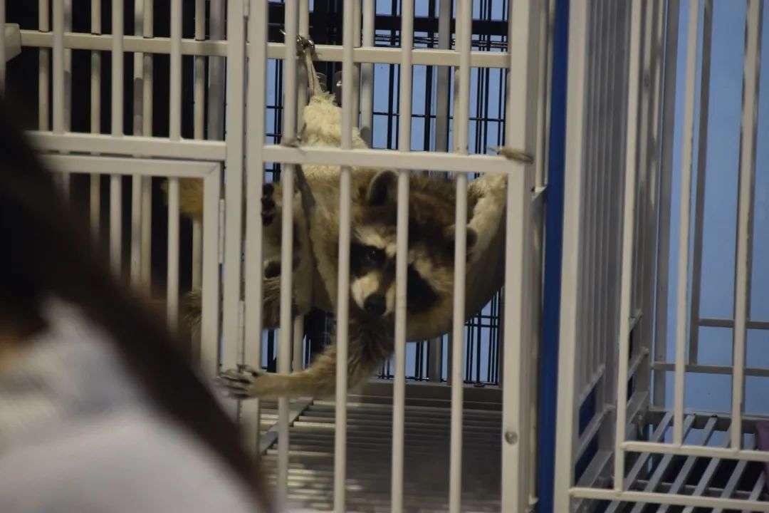 相比水豚tata可以在店内自由活动,小浣熊就没那么自由了。由于成年的小浣熊习性并不像水豚一样温和,而且还有锋利灵活的爪子。为了安全考虑,大多数营业时间,小浣熊只能在笼子里呆着。去店里体验的人们也只能隔着笼子看看它而已。