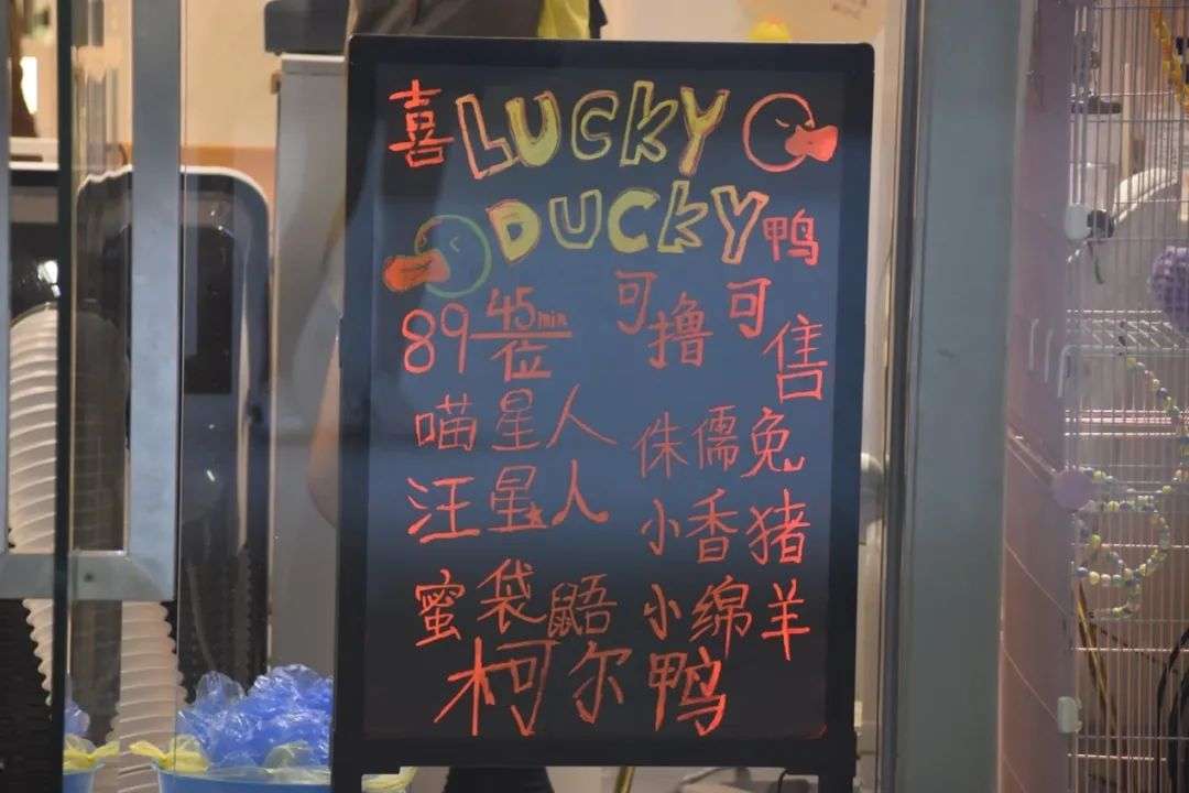 几乎每家宠物体验馆都会充斥着奇怪的的臭味。喜鸭店里工作人员一开始会贴心地帮你抱过来两只鸭子 放在桌上任你抚摸。只不过鸭子有时会毫无预兆的把粪便排在桌子上,这时候一旁的店员会眼疾手快的赶紧拿纸巾擦拭掉。一开始我也不太明白戴脚套的含义,体验过一次也就明白大概是怕踩到什么吧。