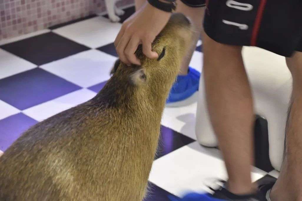 北京三里屯的一家宠物体验馆里,坐着的人每人腿上都趴着一只小兔子,几个人正围着一只水豚撸着。玻璃窗外围了不少人观赏,时不时拿起手机拍下宠物们玩耍的场景。店里的配备很是齐全,鞋套、洗手液、饮料、撸宠时防止弄脏衣服的小垫子一应俱全。为了满足宠物的生活需求,店里还安装了一个大浴缸。
