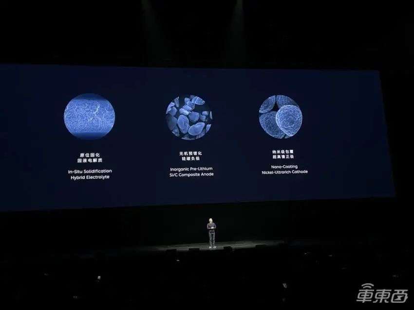 根据蔚来方面的介绍,这款电池将会是固态电池,采用原位固化固液电解质、无机预锂化硅碳负极、纳米级包覆超高镍正极,电芯的能量密度达到了360Wh/kg,而现阶段能量密度最高的NCM811电芯大概在270Wh/kg左右。