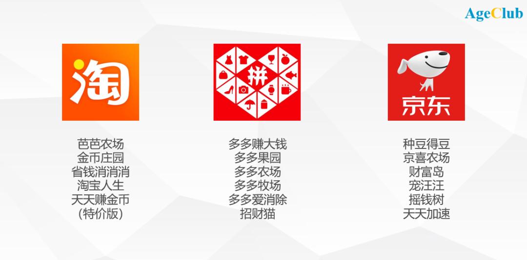 图注:京东/淘宝/拼多多推出的多款游戏产品,AgeClub不完全统计