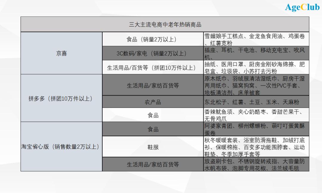 基于老年人群以及下沉市场喜欢“囤货”的特点,电商企业对百货、小家电、食品等品类给予流量或补贴倾斜。