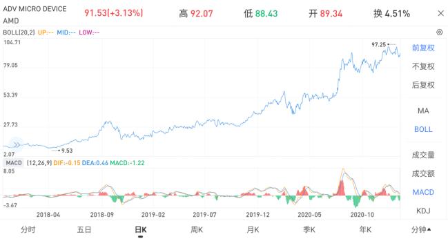而“老冤家”AMD则在华裔女CEO苏姿丰(Lisa Su)的带领下,用六年时间强势翻盘,不仅成功将AMD从绝境中扳回局面,更是实现了市值与股价的疯狂逆袭,从六年前最低不到2美元的股价,一路飙升到如今超过90美元,市值破千亿。