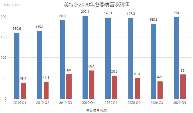 英特尔2020年各季度营收利润