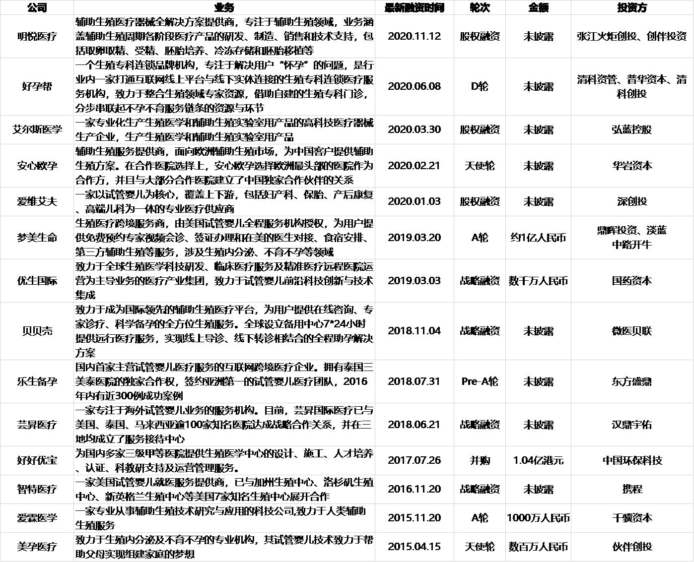 近两年,辅助生殖在投资界的热度有明显的上升。从产业链位置上来看,资本在辅助生殖服务提供商、医疗器械提供商、互联网+中介/咨询服务提供商等环节均有布局。