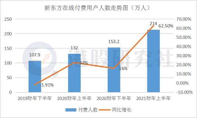 从最新的财报数据来看,2021财年上半年新东方在线的总营收达6.768亿元,同比增长19.2%,总付费学生人次达214万人,同比增长62.5%。从这些角度来看,确实值得肯定。