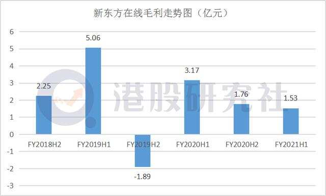 此外,由财报可知,新东方在线的毛利并不可观,回看相关财报,毛利体量已连续三个半年报成下滑走势。