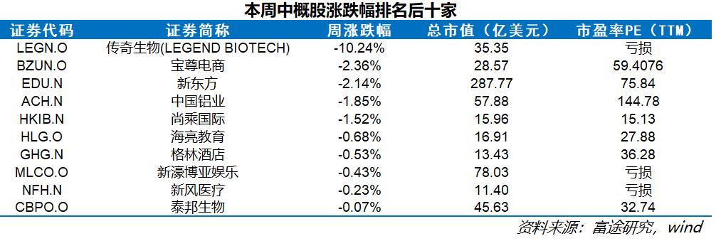 今年以来该中概股指数上涨16.72%,本周该指数上涨7.96%。