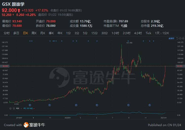 2、在线教育风潮再起,跟谁学股价本周上涨54%