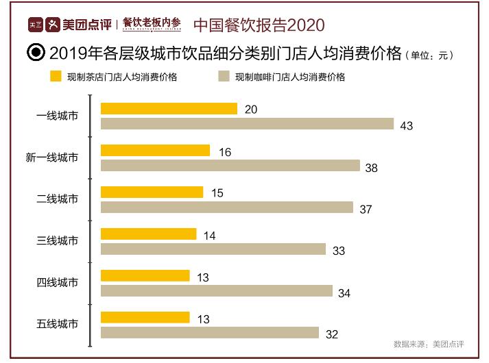目前低线城市入驻的茶饮品牌极为有限,多数消费者处在不知道喝什么的境遇,现磨咖啡依旧多存在于一二线市场,下沉市场的茶饮店咖啡品类还以速溶粉末为主,现磨咖啡价格较高。