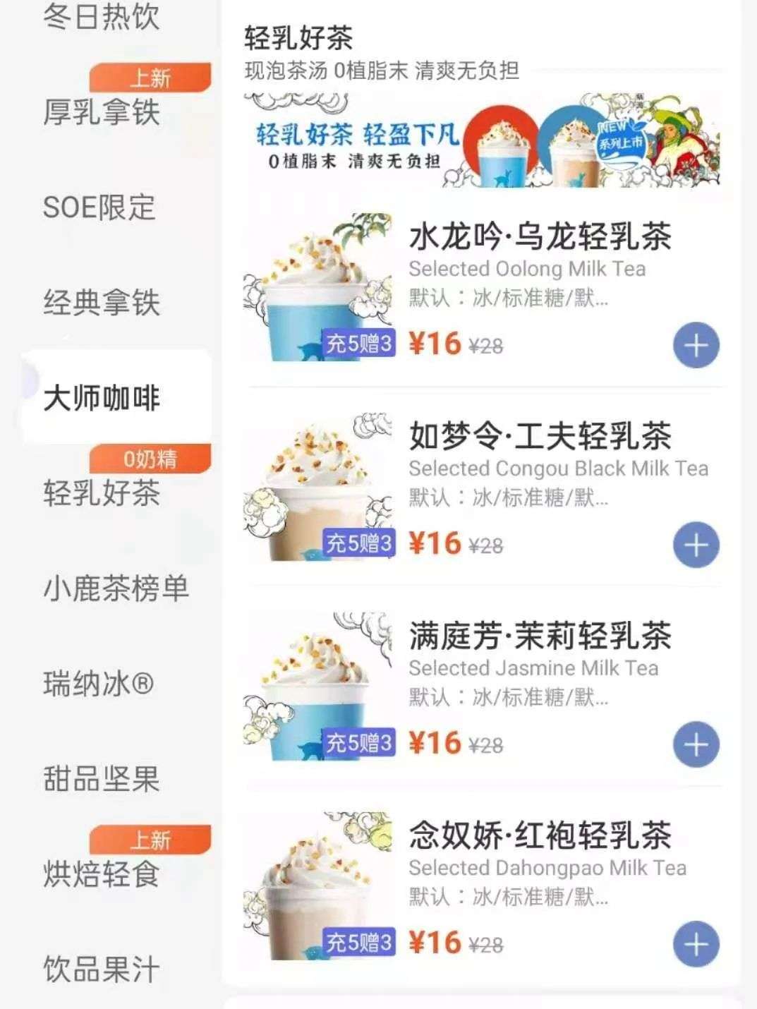 日前瑞幸又上线了4种轻乳奶茶,从产品名称来看,满满的中国风扑面而来,而相较于动辄30一杯的奶茶,瑞幸的轻乳茶从性价比将吊打一众品牌。