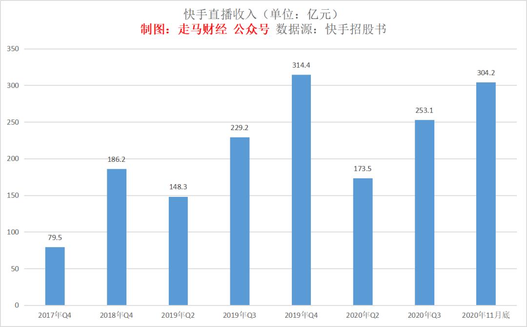 从收入增速看,2018年快手直播业务增长134.2%,2019年增长68.9%。2020年截至Q3同比仅增长10.4%,如果单看20年Q3,该季度直播业务收入79.6亿,19年Q3单季度直播收入是80.9亿,同比是下滑的。19年Q4单季度直播收入85.2亿,20年Q4前两个月直播收入是51.1亿,最终季度收入很可能在76亿元左右,下滑幅度更大了。