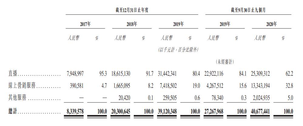 快手的直播业务不仅是成熟业务,而且已经是盈利业务。根据报告,快手直播业务营收2017-2019年分别占据行业的15%、21.5%、22.4,而2020年,这一占比可能下降到18.1%。