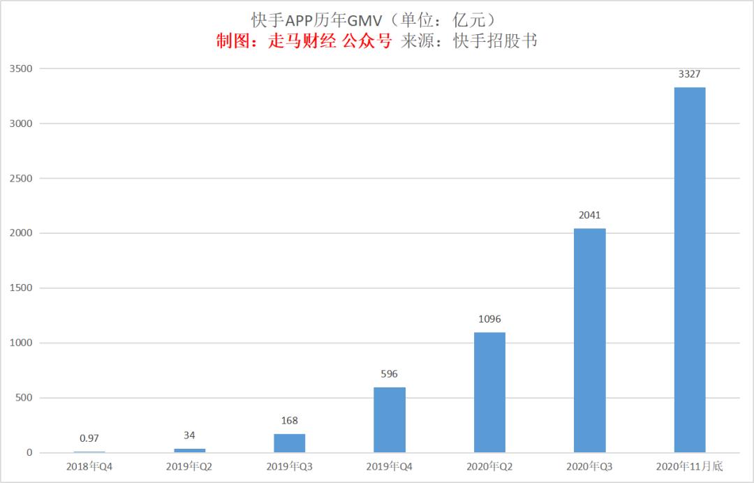 快手的电商业务是2018年8月份推出的,所以18年的基数非常低,仅有9700万元GMV。这块业务是快手增速最快的业务,2019年增长600倍,2020年Q3同比增长了11.1倍。2020年H1 GMV 1096亿,Q3单季度GMV达到945亿,Q4前两个月GMV高达1286亿,2020年全年GMV大概率会超过4000亿元。