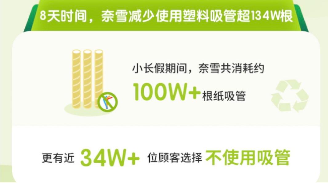 除了众所周知的肯德基的木勺以及麦当劳的取消,新茶饮们今年在吸管上也是下足了功夫。202年十一假期过后,奈雪发布其《2020国庆中秋小长假奈雪的茶大数据报告》,报告显示,小长假期间,奈雪共消耗约100多万根纸吸管,减少使用塑料吸管超134万根。其中,还有近34万位顾客选择使用直饮口,不使用吸管。