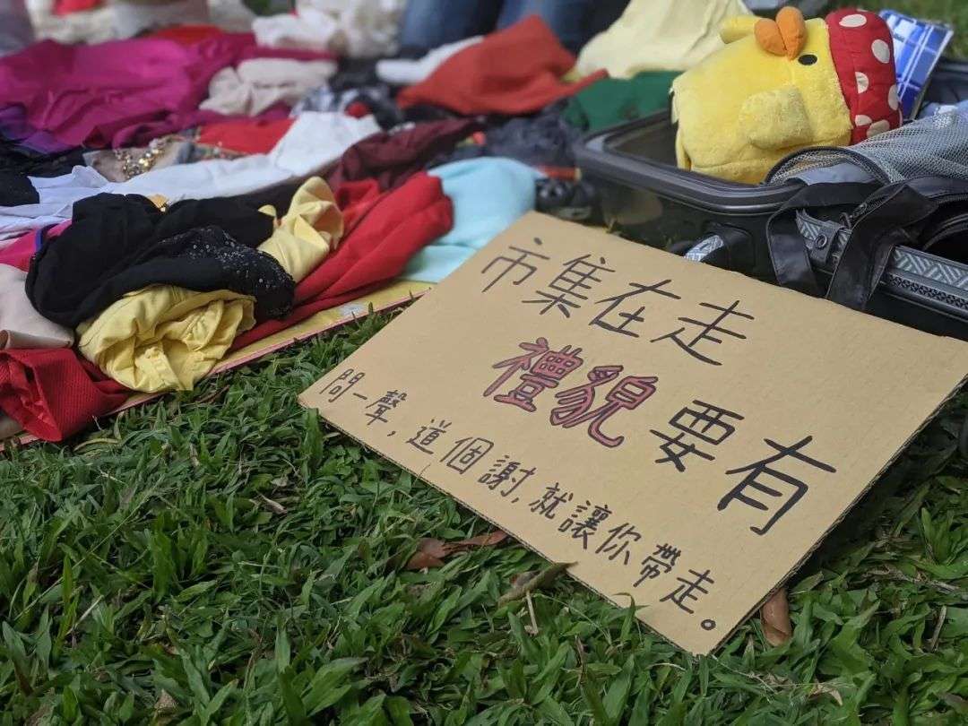 今年12月19日的这个周末,杨宗翰站在台中市丰乐雕塑公园的草坪上拍照,这里是全台湾50个“免费市集”的其中之一,人们送出闲置物品和食物,各取所需。往少了算,假设一个市集有100人参加,那么总共至少有5000人到场。