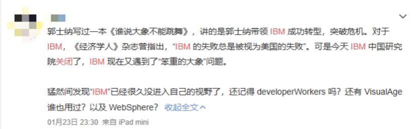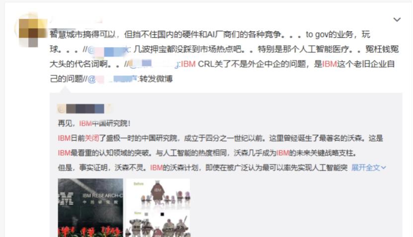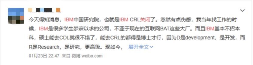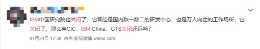 有网友表示,IBM曾经是国内数一数二的研发中心,也是万人向往的工作场所,“它关闭了,那么离CIC、IBM China 、GTS关闭还远吗?”