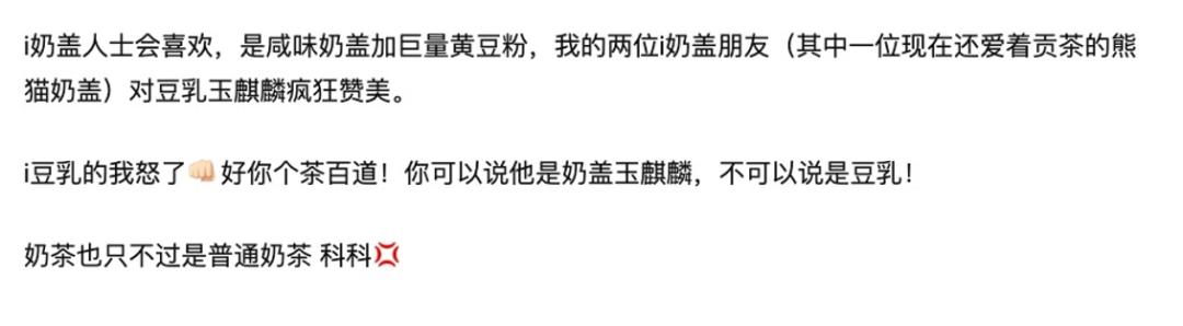 现制茶饮品牌茶百道被挂的次数仅次于乐事,它家招牌的豆乳玉麒麟站在了风口浪尖上。可能是因为期望值太高,豆乳粉丝们纷纷怒斥它名不副实。