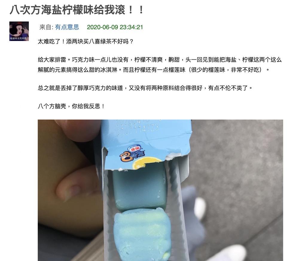 热门口味中被喷得最厉害的是柠檬、抹茶和椰子。抹茶放多容易苦,太少又不如不加。柠檬元素更是如此,保留原味太酸,糖加多了不仅盖住本味,甚至会发苦,以至于柠檬口味食品的好评率还不到40%。