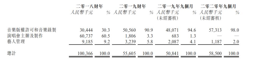 这一判断也可以在招股书中得到印证:“这些演唱会都是中小规模,在小型现场演出场所等场地举行。主办这些演唱会仅出于营销和宣传目的,并不会我们产生收益及大量成本。”究其原因,相比演出主办这门重生意,音乐版权和音乐制作的风险无疑更低。