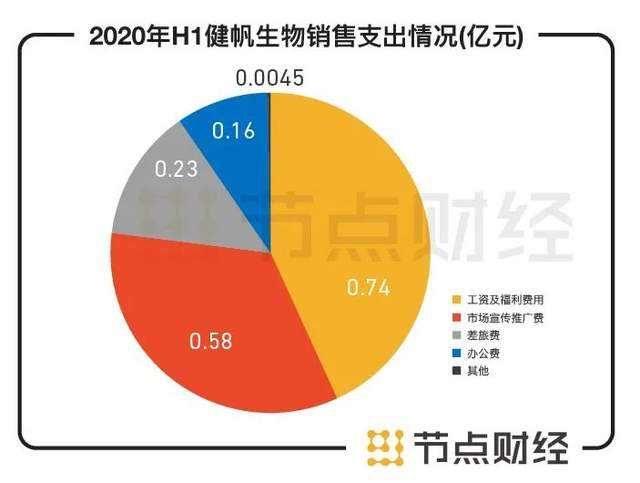 即便是在国内疫情爆发,医院停诊,禁止医药代表拜访的2020年上半年,健帆生物的销售费用依然居高不下,达到1.71亿元,同比增长7.02%,占营收的19.66%。其中,工资及福利费用为0.74亿元,市场宣传推广费为0.58亿元,差旅费为0.23亿元,这三项占了销售支出的大头。