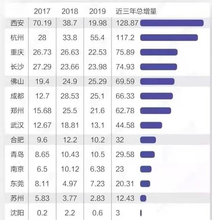 楼市最根本的逻辑一定是供需。这几年,肇庆一直以3倍于前期的供应量推地,一直延续至2019年!土地大量供应之后,人口增长却十分乏力,2019年仅增加3.54万人,与江门一起成为湾区吊车尾。