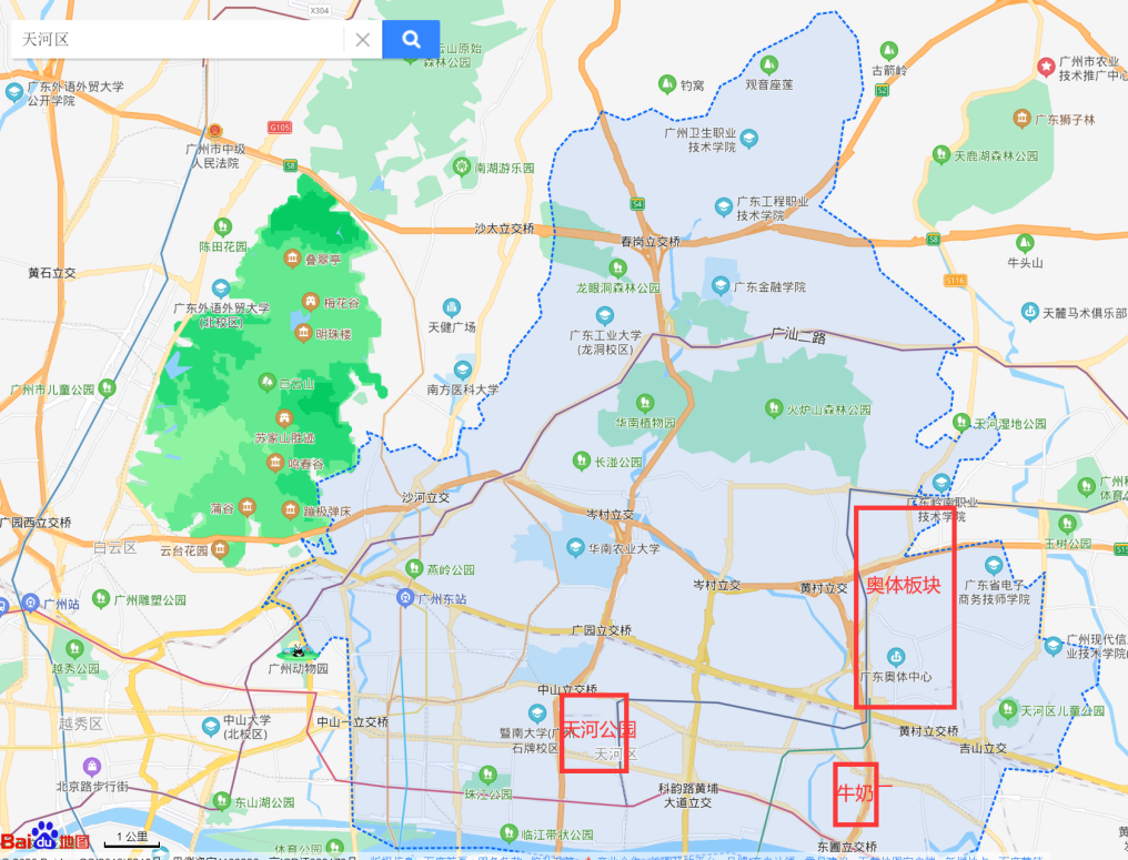 东向,天河价值板块排序为:天河公园>牛奶厂>奥体板块。