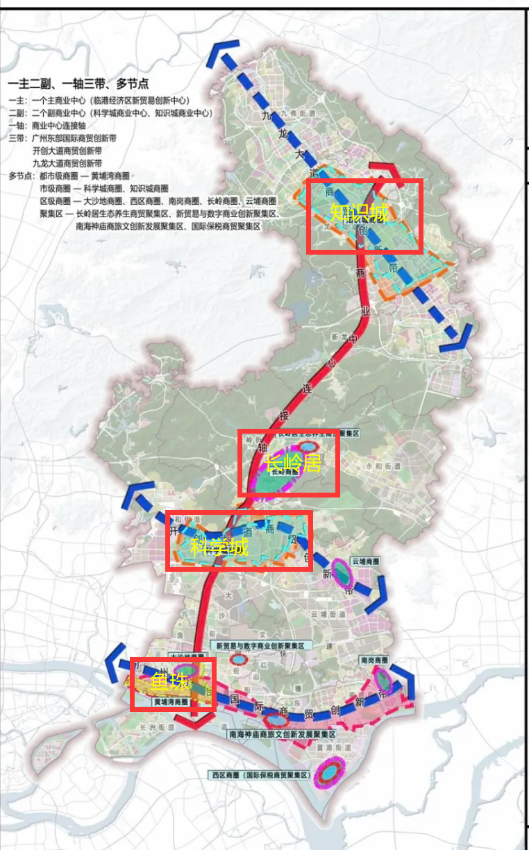 东向,黄埔核心板块价值排序为:科学城>鱼珠>长岭居>知识城。