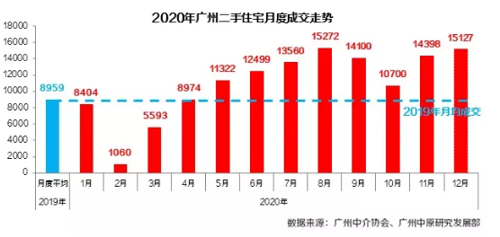 广州确实2020年下半年,表现非常亮眼,一二手市场量价齐升。新房全年成交量累计破10万,创三年新高,二手成交量两月破1.5万宗,远超2019年每月表现。新房价格同比上涨超12%,二手房价格上探至4万,创历史新高。
