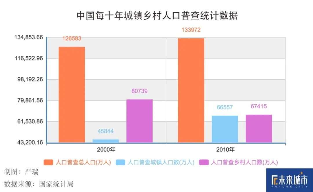 从国家统计局每十年公布的统计数据来看,我国的城镇人口正在,也必将在未来很长一段时间持续增长,并且,在总人口增速趋于平缓的环境中,城镇人口的增量很大一部分靠的是乡村人口的转化。