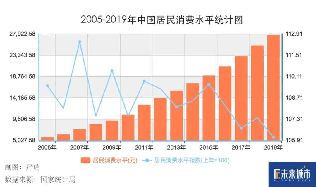 城市化是现代化的标志,而消费水平则是城市现代化的标志。据国家统计局已公布数据来看,中国居民家庭恩格尔系数不断下降,居民消费指数不断上涨。