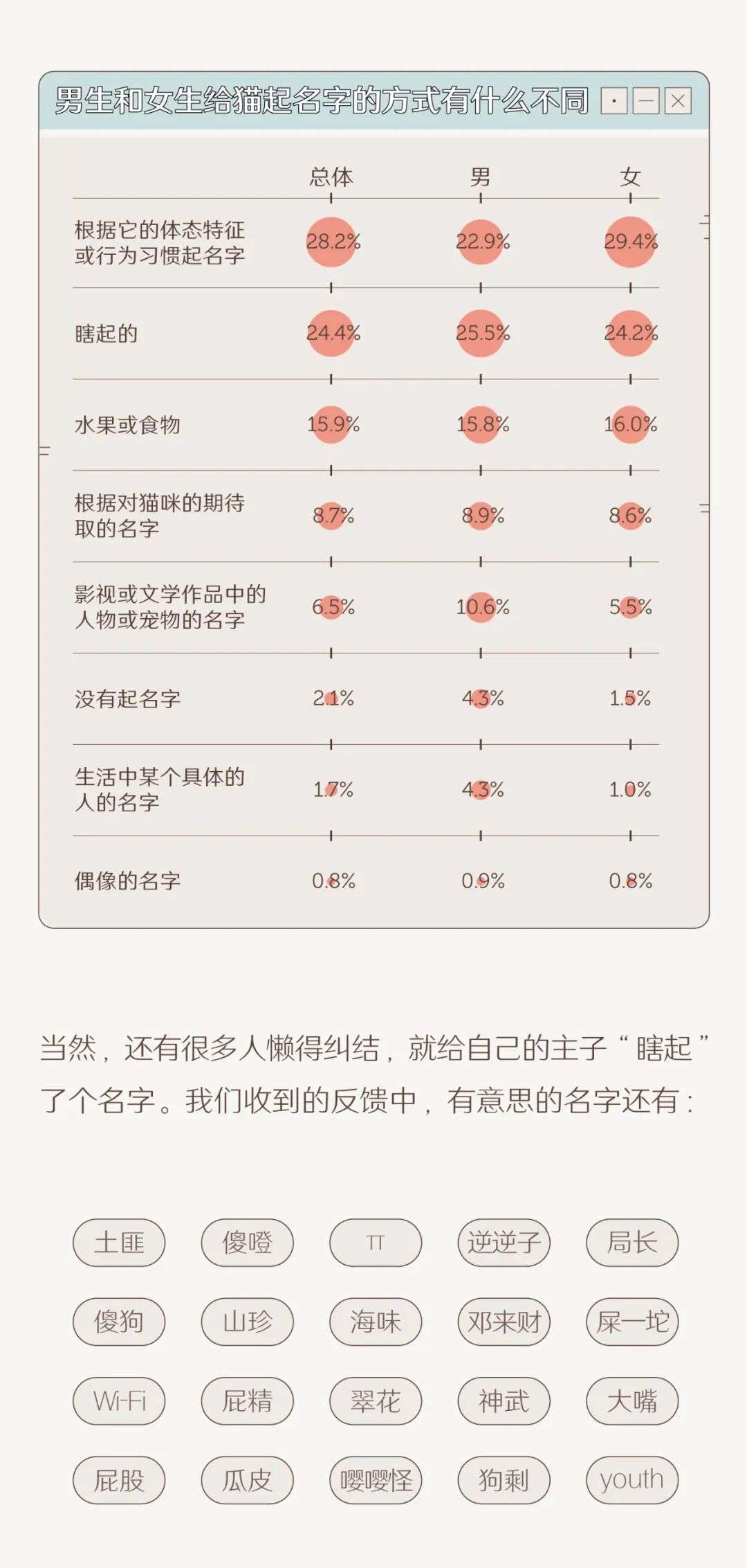 4、超过一半的人把猫咪当成自己的孩子,并且喜欢用体态习惯给它们起名字。