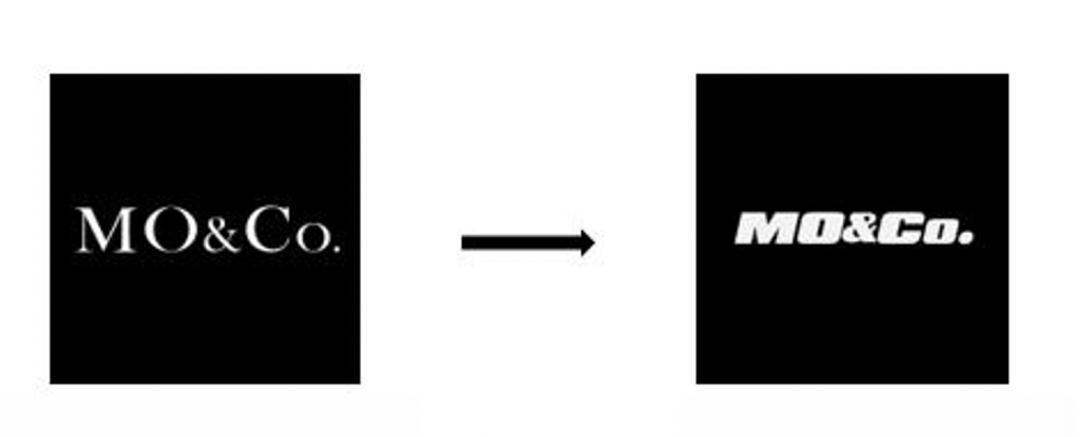2019年,成立15年的国产服装品牌MO&Co.在最新推出的第八代店铺形象中更换了品牌logo,将原有的衬线字体改为粗斜体,凸显出年轻化的潮流。logo及店铺形象的革新标志着MO&Co.开启了新一轮品牌升级,以适应不断变化的市场环境。