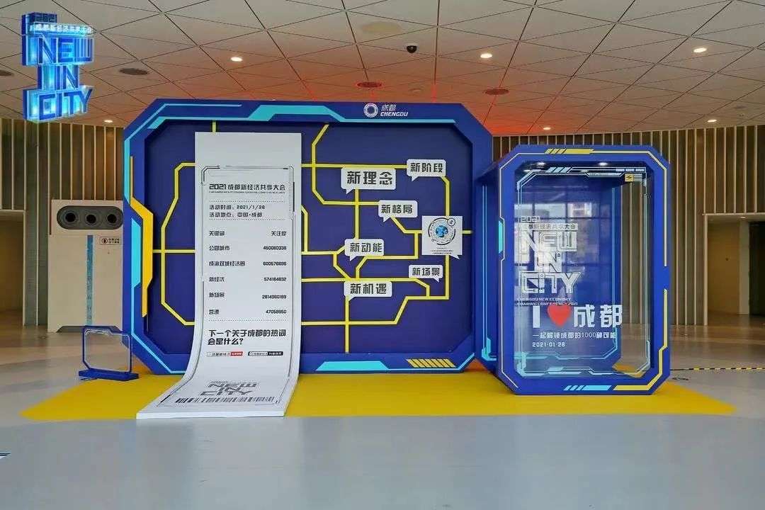 “共享”意味着资源的交换,形成人人参与、人人分享的氛围。1月26日,由成都市人民政府主办、成都市新经济发展委员会承办的“NEW IN CITY 2021成都新经济共享大会”一改传统会议的刻板流程,利用全系投影、艺术装置、互动触屏等多种形式,展示成都新经济企业的产品成果。