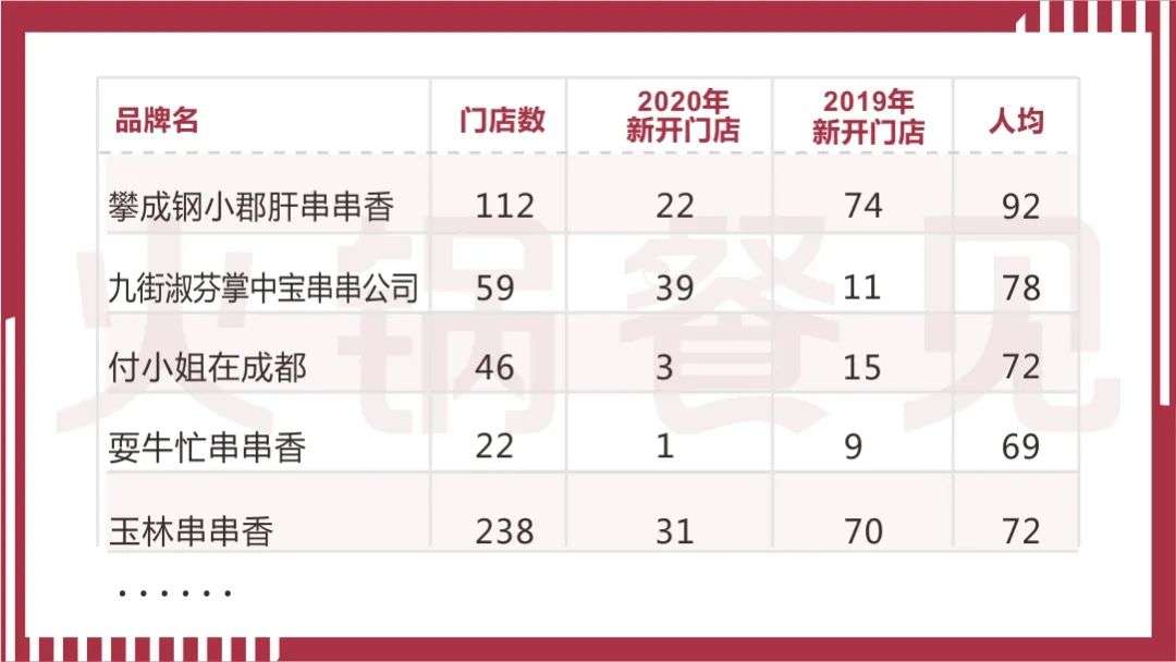 但从品牌影响力来看,虽然九街淑芬掌中宝串串公司、付小姐在成都、攀成钢小郡肝串串香等品牌,均未上榜,仅有几十家、甚至十几家门店。但在全国已然打响了知名度,成为串串香的代表品牌,这也是品牌化运作的优势。