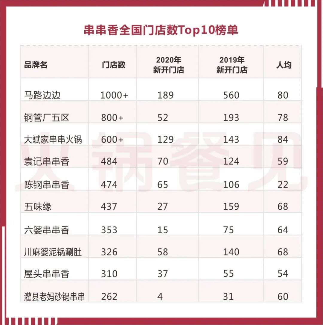 其次是钢管厂五区超800家,大斌家串串600多家。灌县老妈砂锅串串以262家门店跻身前十的最后一名。