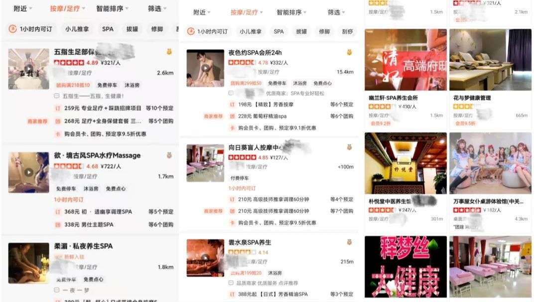 最近,陆玖财经身边很多男性朋友发现了一件非常有意思的事情,他们被算法集体判定为了“有特殊需求”的用户,比如他们用手机打开大众点评搜索周边SPA(水疗),系统就会给他们匹配很多一看就很“激情燃烧”的店铺,而在同位置的一名年轻女性用户查看周边SPA,结果就完全不同,一切都很正常;小红书的同城展示结果也一样,展示给中年男性的都是很露骨的年轻美女,她们的动态大多以交友为目的;甚至抖音也能不断的刷到各种交友用户,引流到QQ之后,发现竟然是招嫖的账户。