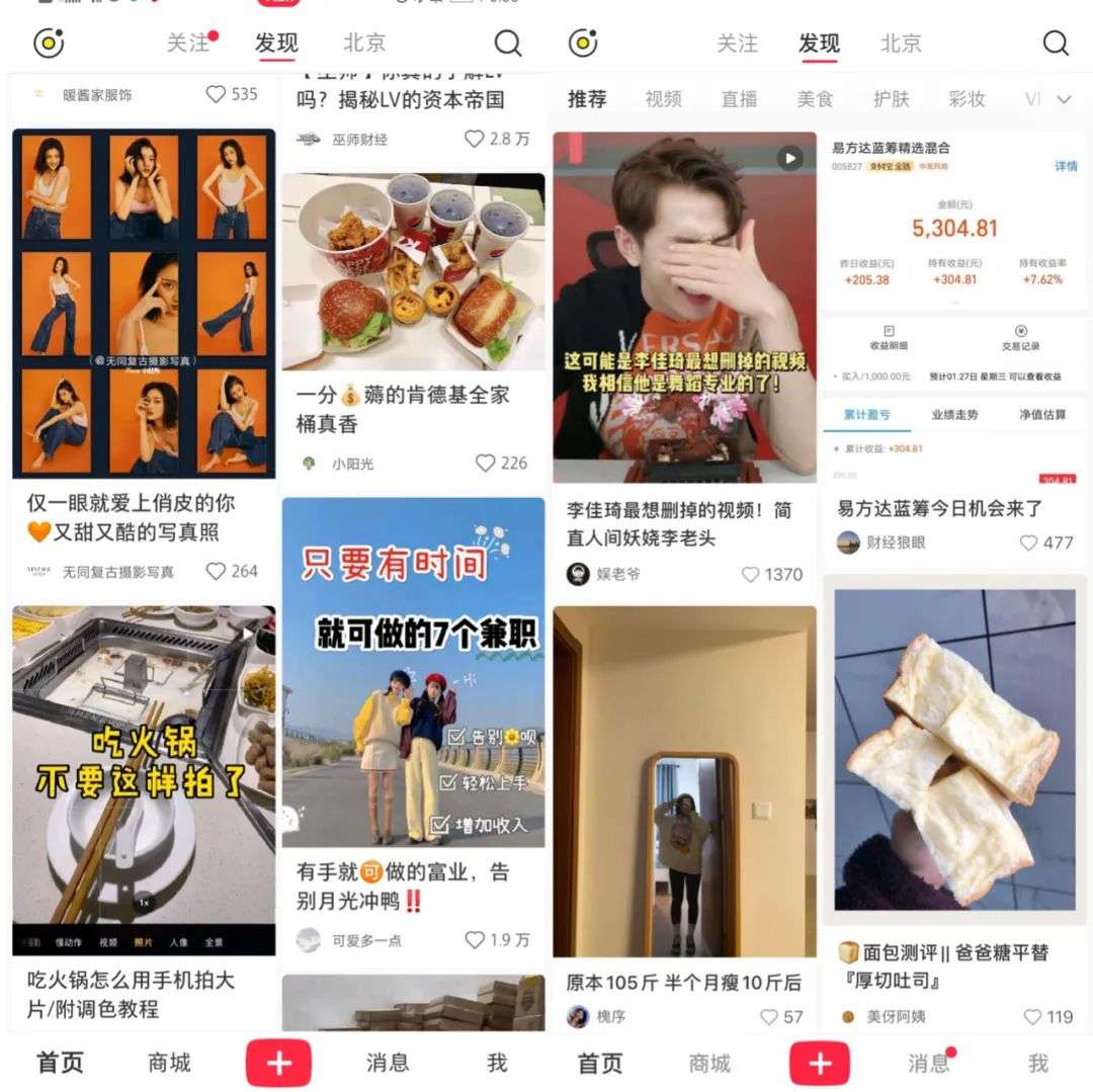 打开中年男性的手机,小红书首页的推荐如下: