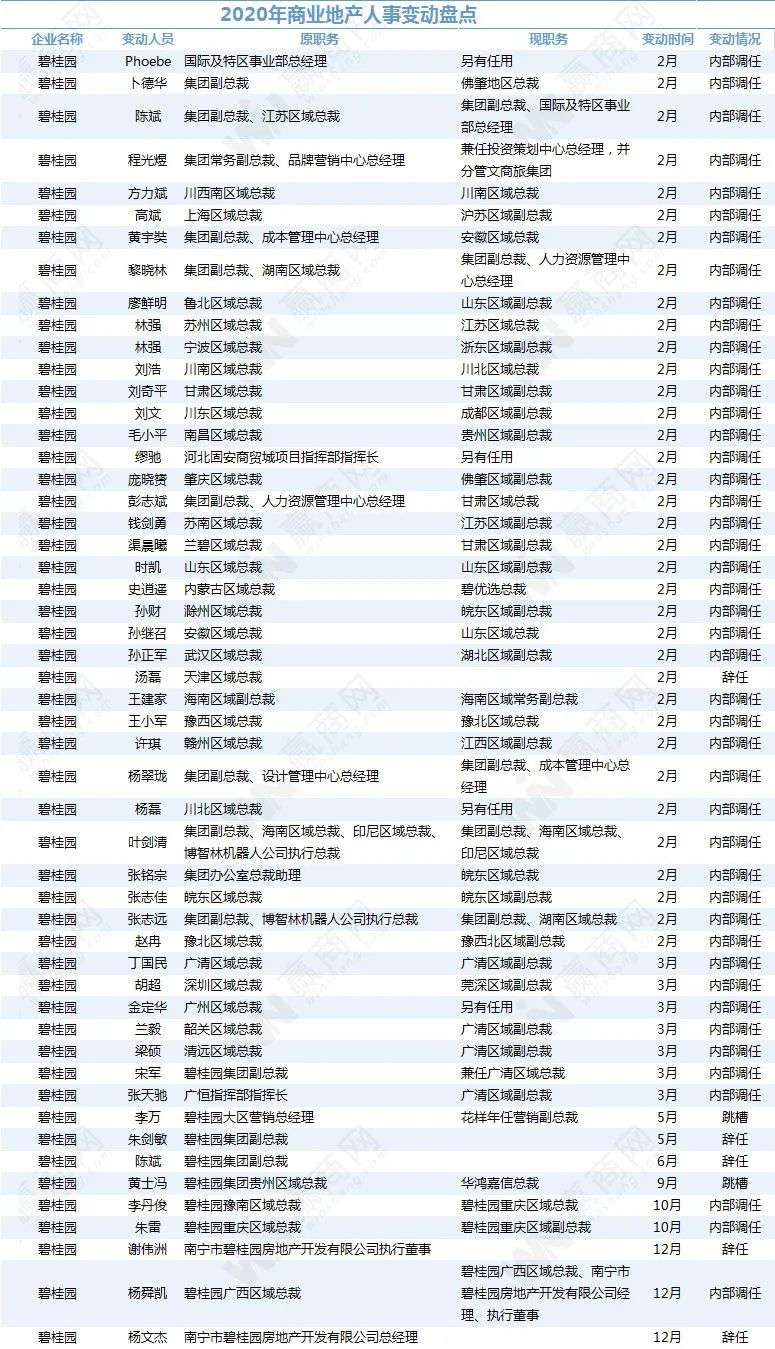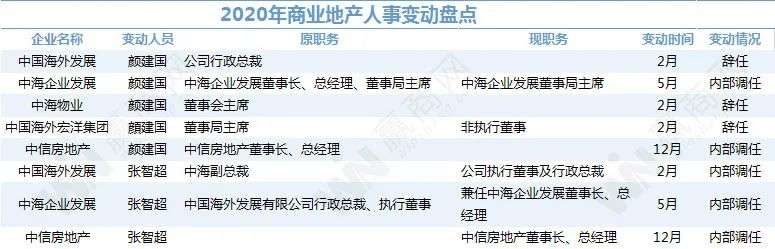 从涉及的企业来看,2020年超过180家开发商企业的高层人事出现了变动,其中不乏万达、万科、碧桂园、中海系、世茂福晟等大型企业出现大规模的人事调整,涉及董事长、总裁等较具话语权的公司高层。