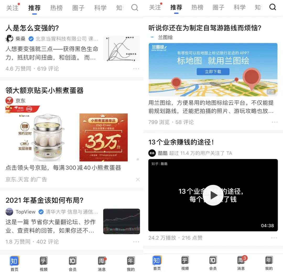 与此同时,知乎组建了商业化团队,形成了广告和知识服务两大收入模式。