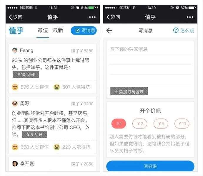 在知乎正苦于寻找盈利机会时,有用户提出愿意付费来邀请自己信赖的人回答问题。知乎顺应这个需求,做了“值乎”。这件事让管理层意识到,付费机制是很有价值的。