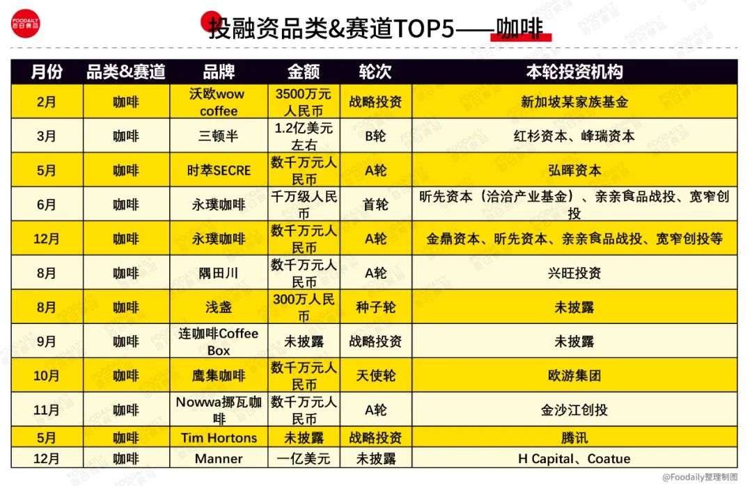 根据盘点,2020年,中国咖啡行业共发生投融资事件12起,零售咖啡发生融资事件7起,展总融资事件的58%,其中精品零售咖啡最受欢迎;咖啡馆发生融资事件5起,占比42%;永璞咖啡作为精品咖啡的代表,成为唯一斩获两轮融资的咖啡品牌;在进入中国市场一年多后,“加拿大国民咖啡”Tim Hortons多了一个意想不到的投资人腾讯……