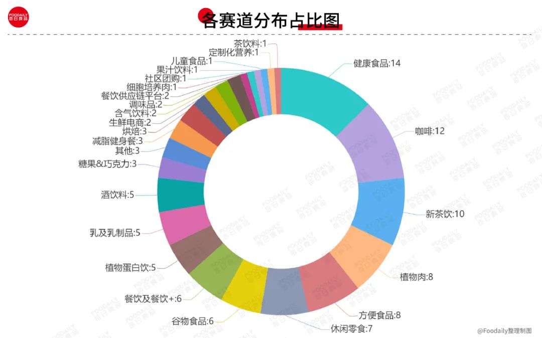 从品类&赛道来看,健康食品、咖啡、新茶饮、植物肉、方便食品仍旧是资本们最青睐和看好的几大领域;而像植物蛋白饮、酒饮 、减脂健身餐等也后起直追,逐步走向广泛大众;此外,如个性定制化营养、细胞培养肉等在海外已经流行的细分赛道开始进入资本视野,并获得大力支持。