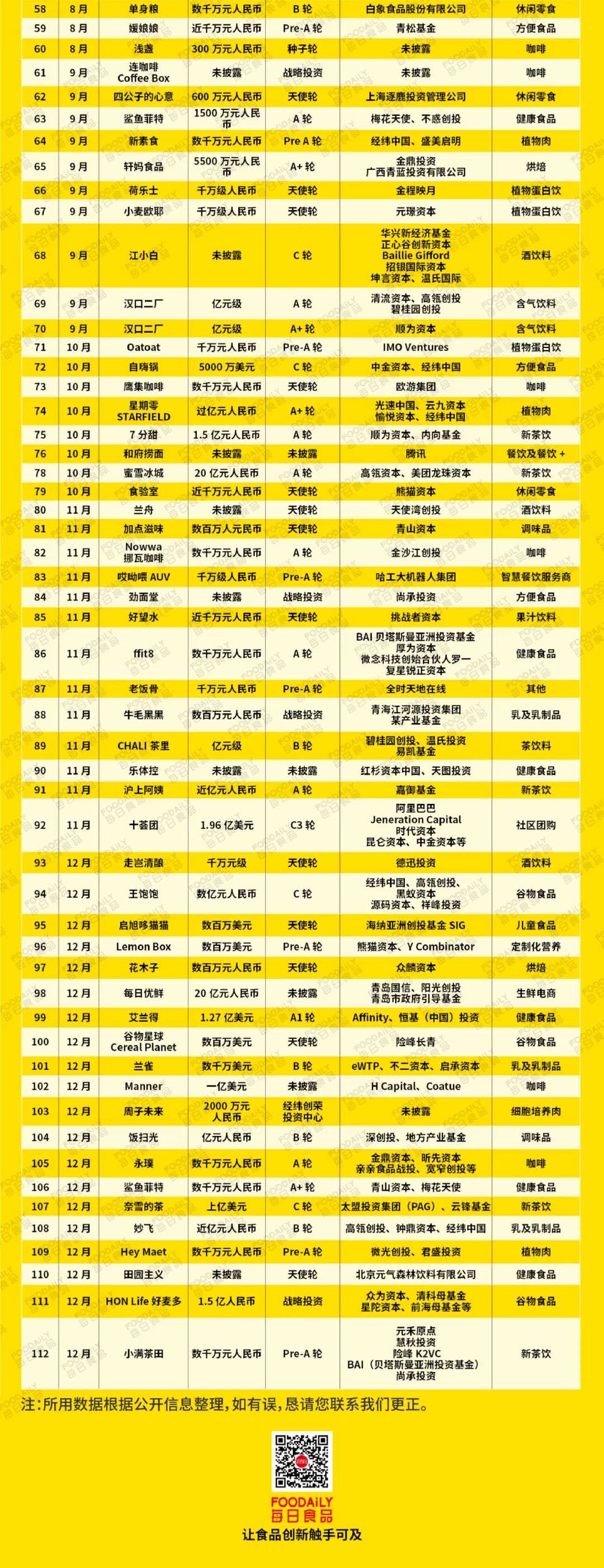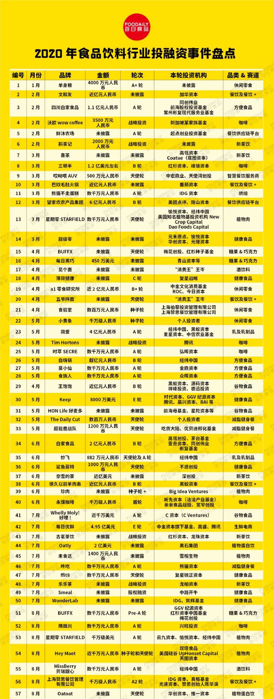 资本造新加速,盘点2020年食饮行业112起投融资事件