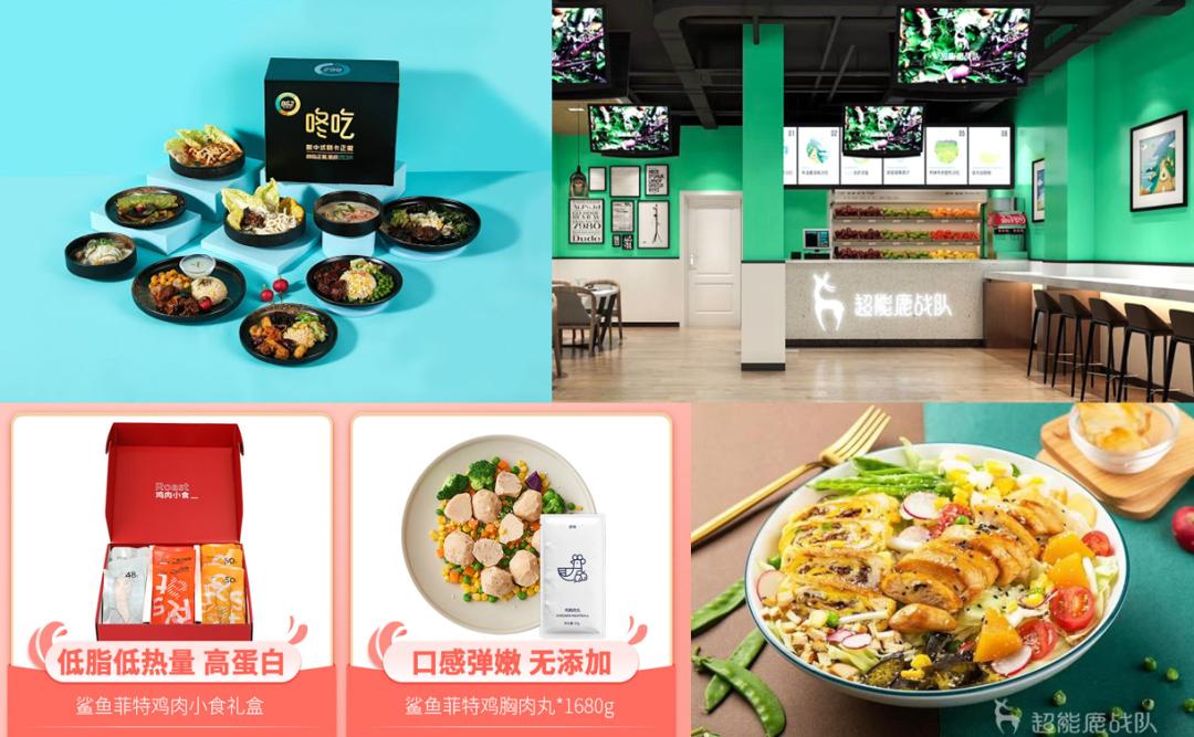 (2)健康即食。以即⻝鸡胸肉作为切入爆品,鲨鱼菲特用四年时间成为上榜天猫生鲜鸡胸肉类目第一,且品类也从鸡胸肉逐步拓展到肉类、杂粮、冲饮等,覆盖正餐代餐、佐餐、零⻝等各种不同的⻝用场景。这一成功案例为我们证明健康即时餐的更多种可能——不一定要在线下店用餐、不一定非要低温加热食用,最好的解决方案其实是既健康、又能方便即时地食用。此外,Keep、薄荷健康、超级零均可以提供偏定制解决方案的代餐品类。