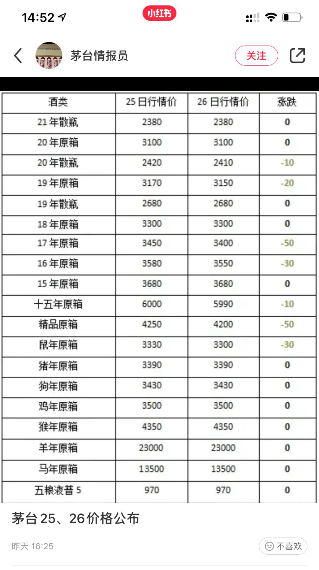 根据社交媒体某账号统计的每日茅台价格变动显示,2021年新出产的散瓶装25日和25日订的“行情价”均为2380元,2020年散瓶装分别为2420元和2421元,原箱两日行情价均为3100元。