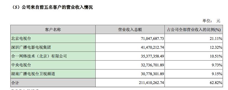 在2013年,华录百纳前五名客户的营收情况中,央视和湖南卫视赫然在列,而合一网络(优酷)则是《咱们结婚吧》的独家网络版权方。至此,当时,在行业内部盛传的《咱们结婚吧》天价版权也有了结局。