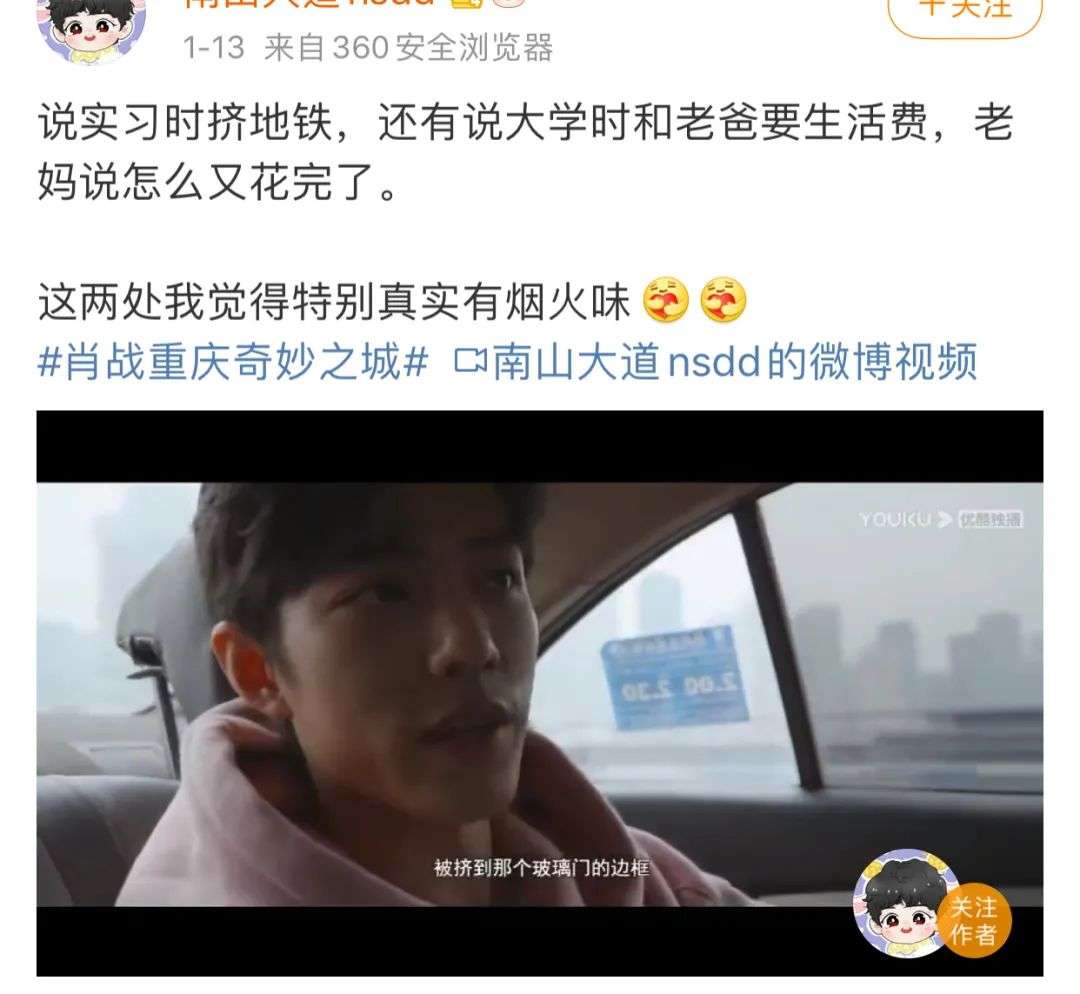 这其中,肖战无疑贡献了最多的话题和热度。当第二期重庆篇上线,#奇妙之城重庆#微博阅读量超7.1亿,而与肖战相关的话题阅读总量破20亿,在豆瓣上也有很多粉丝为节目组送上好评。